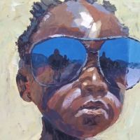 Jimmy, stylised as G’me, lives and paints in Malawi. Originally from Kasungu, he has lived in Lilongwe for most of his life. He began painting at the age of eleven, with a keen interest in portraits and land scapes, and occasionally abstracts. He works full-time as a freelance artist, working to commission or selling through galleries and exhibitions and also he is one of Art in the Park event team based in Lilongwe. Jimmy lives in Lilongwe with his wife and three children.