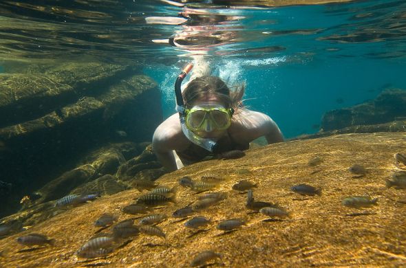 There are over 600 species of fish in the lake with new species being discovered all the time. The fish life is abundant which makes snorkeling very popular. Our boat Alfie goes out daily to various dive sites. One can enjoy a spectacular show from the fish eagles on these trips.
