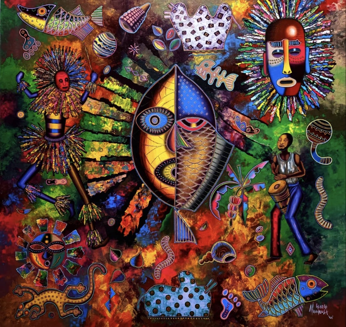 George believes that art is the only way to share something inside him without necessarily communicating verbally with the public. Now he is a well - known Malawian partial abstract painter, and so far he has participated in a number of art shows across Malawi and beyond.